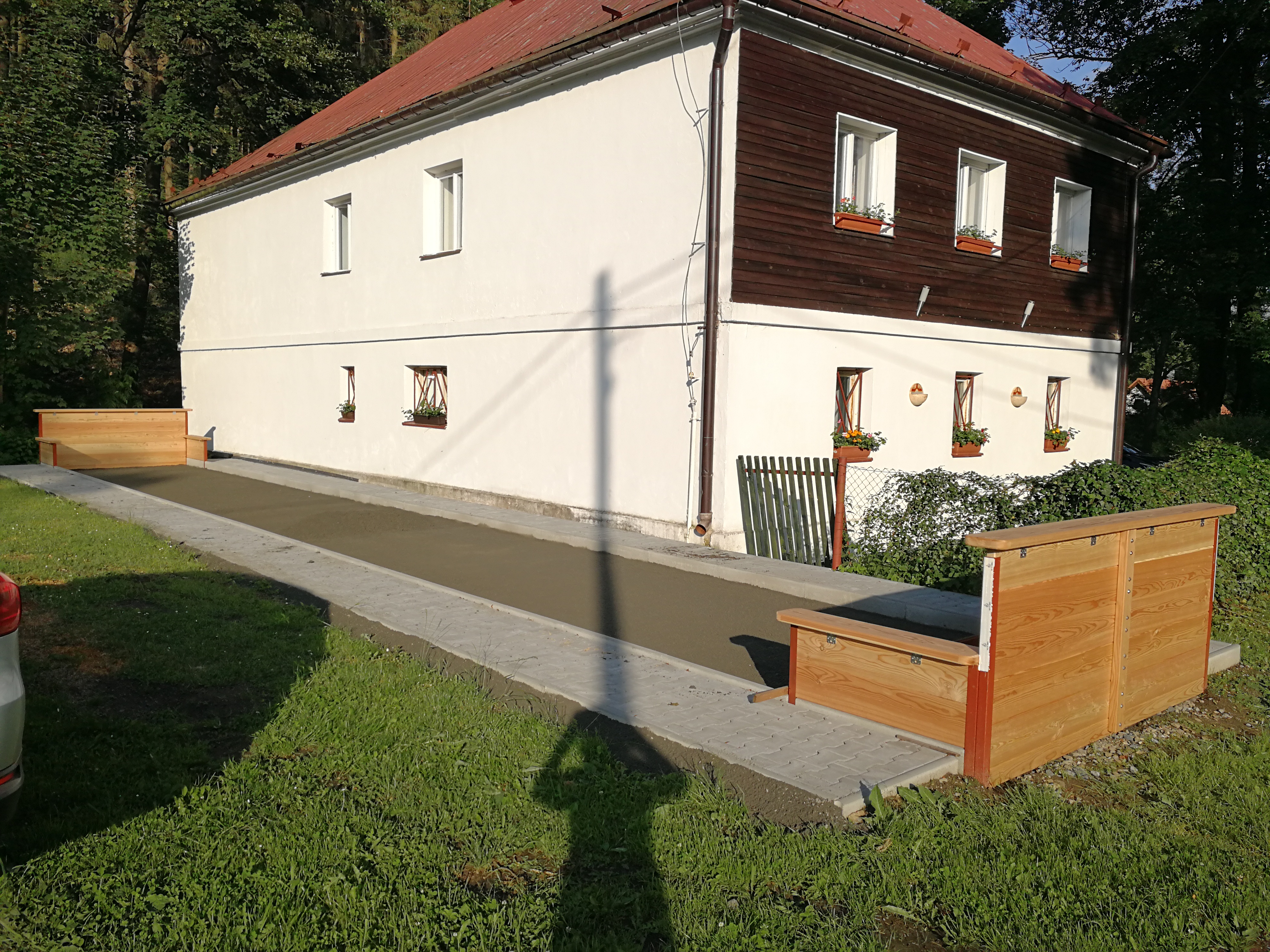 Je to zděná jednoposchoďová budova kde k pronájmu slouží její ideální polovina. K pronájmu pro hosty jsou 4 třílůžkové pokoje, společenská místnost s krbem, vybavenoá kuchyně a potřebné sociální zázemí.